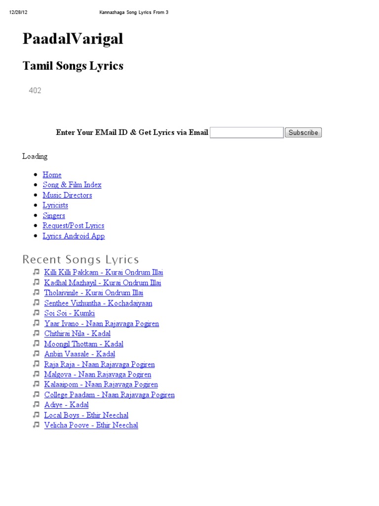 Kannazhaga Song Lyrics From 3 Cinema Of India Tamil Cinema - Pogiren song from 36 vayadhinile is sung by kalpana and composed by santhosh narayanan, starring jyothika, rahman.