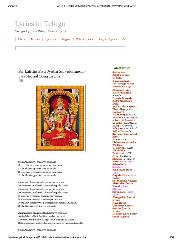 Lyrics In Telugu Sri Lalitha Siva Jyothi Sarvakamada Devotional Song Lyrics Cinema Of India Sikhism - Catch this year's best telugu song words with their respective translations in the english language.